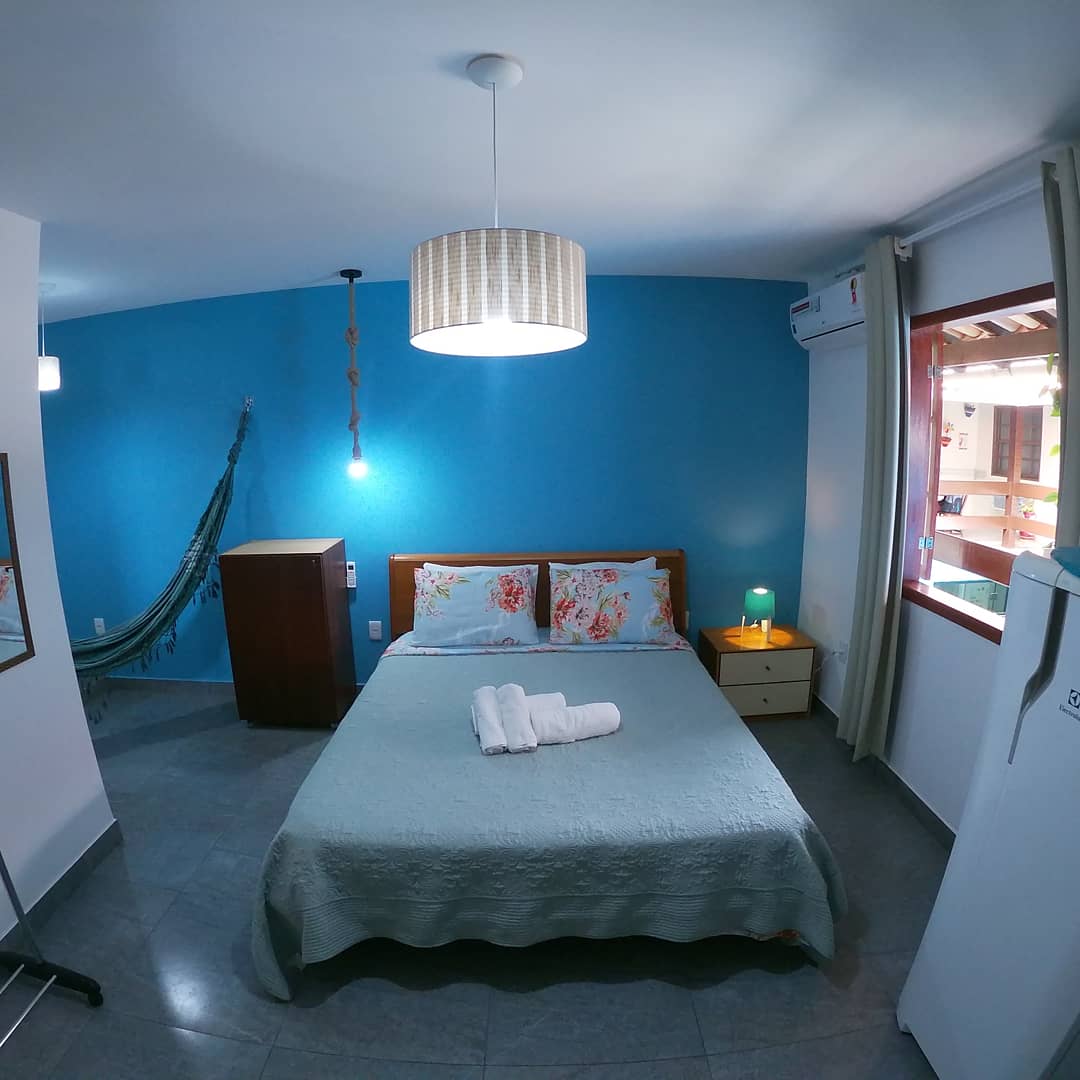 Suítes com cama de casal. Para Casais, quartos com conforto, privacidade e aconchego.